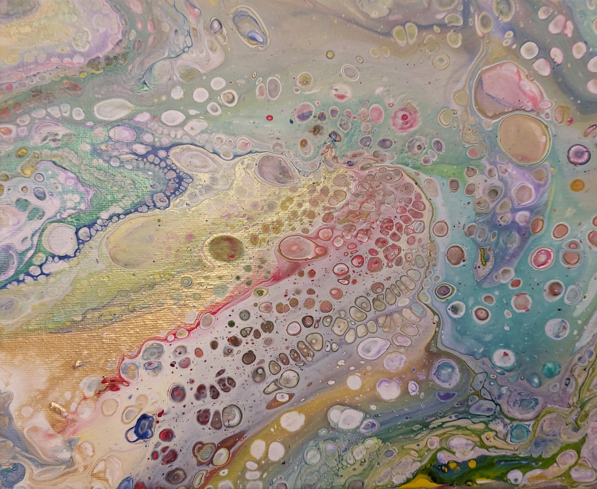 Mit Fluid-Painting entstehen durch flüssige Acrylfarben erstaunliche, unvorhersehbare Ergebnisse. Die dadurch entstandenen Farbenspiele und Formen bieten viel Möglichkeiten zur eigenen Interpretation des Gemäldes.